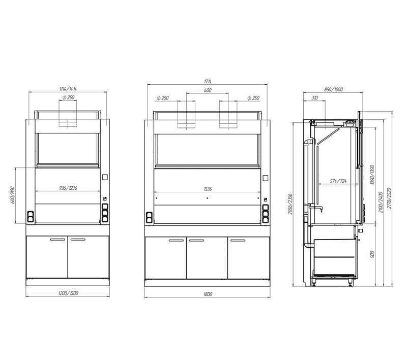 | 22-08.726 шкаф лабораторный вытяжной ШВЛ-05.3 | Цельнометаллический корпус, вода, вентилятор, монитор воздушного потока | Бесшовный керамогранит GresLab с бортиком | 1500х850х2600 |
