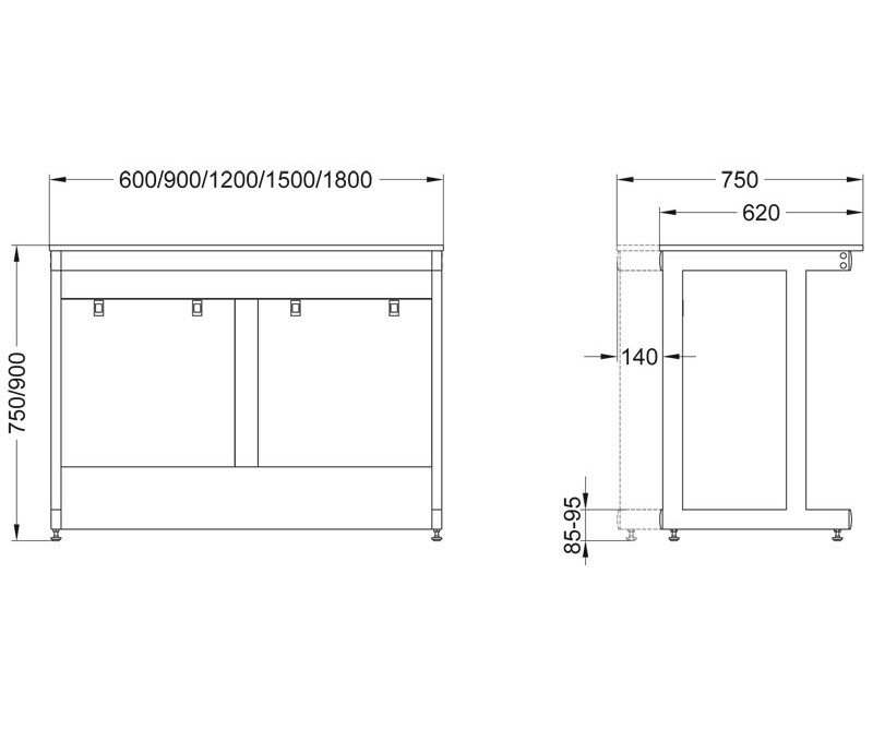 | 61-14.204 стол лабораторный усиленный СЛ-11.2 | Керамогранит (плитка 600 х 600 мм) | 600х620х900 |