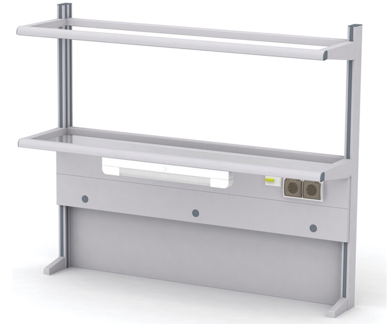 исп.3, алюм., пристенная, 2 полки, электрика, метал. экран, панель для коммун. (вода, газ) 1500 x 330 x 1000 мм