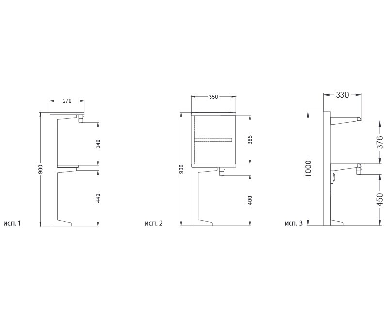 исп.3, алюм., пристенная, 2 полки, электрика, метал. экран 900 x 330 x 1000 мм