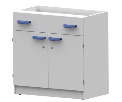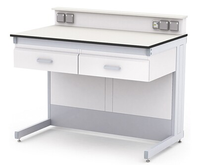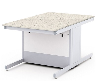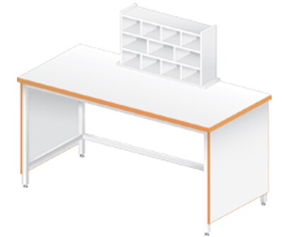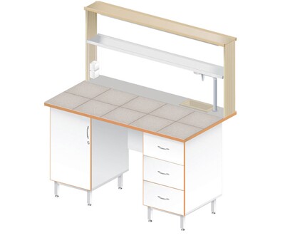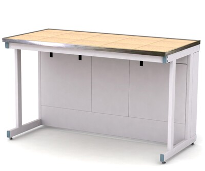Каркас из металлического профиля , окрашенного порошковой краской (цвет RAL 7035). Материал столешницы - TRESPA TopLabPlus 16 мм