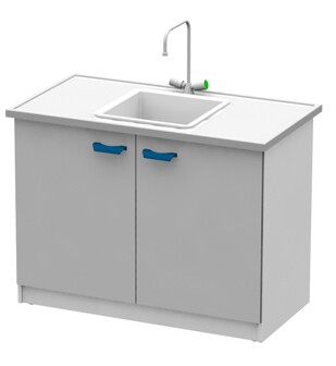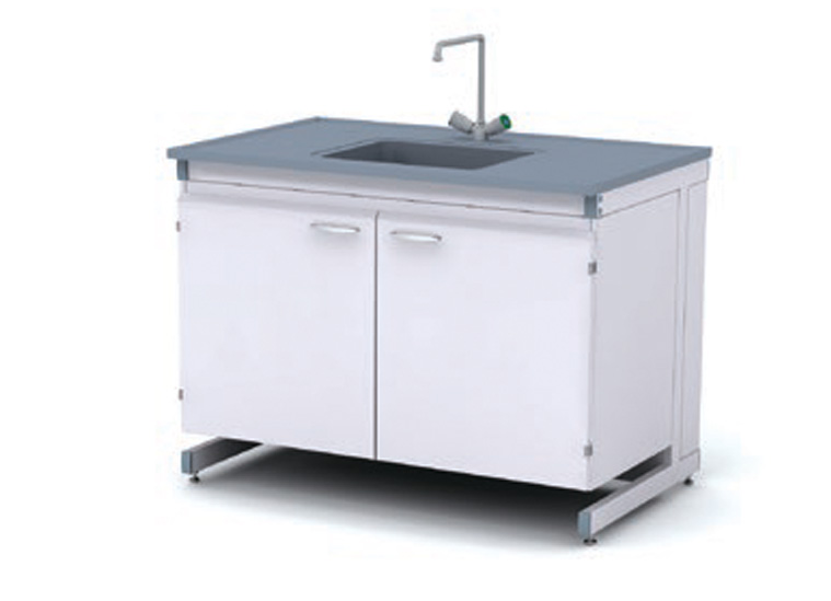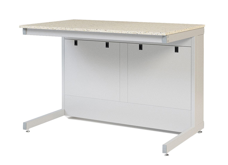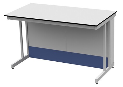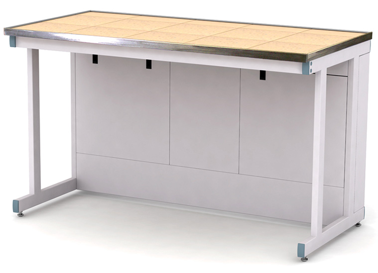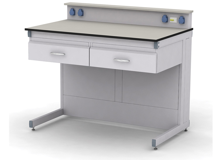 Каркас из металлического профиля , окрашенного порошковой краской (цвет RAL 7035). Материал столешницы - TRESPA TopLabPlus 16 мм